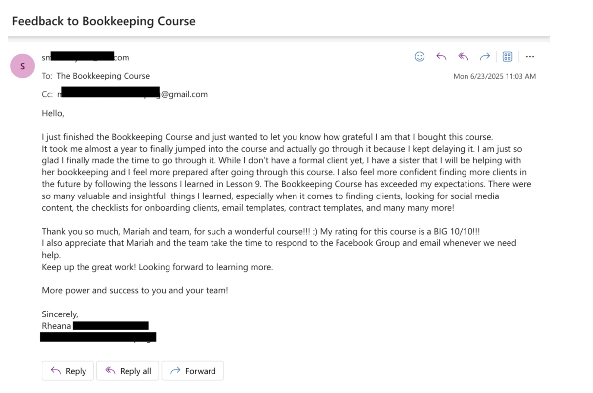“My bookkeeping business has made $120,000... Wouldn't have been possible without your program.”